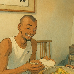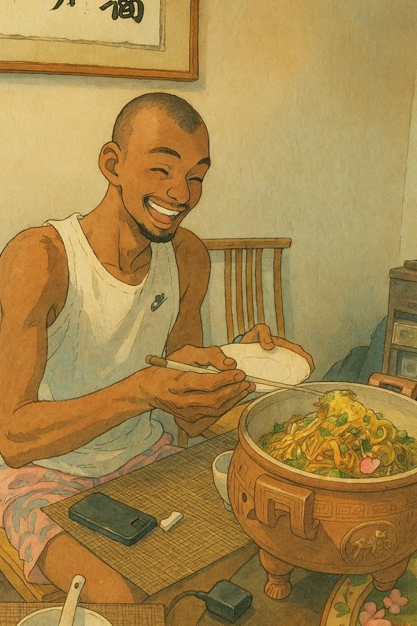 吉普力风格生成🥢文班亚马在嵩山吃水席 笑容满面大快朵颐