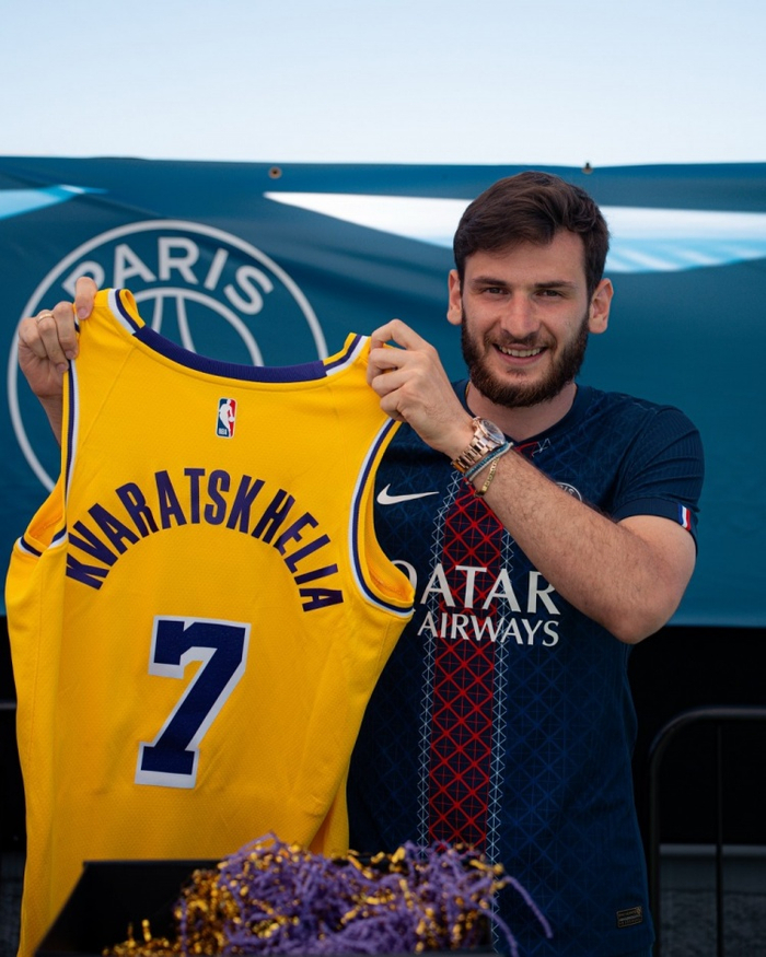🤝⚽ 大巴黎球员登贝莱、克瓦拉茨赫利亚等人获赠湖人球衣