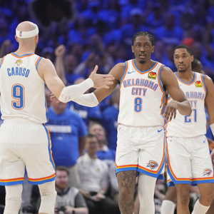 直播吧6月23日讯 雷霆103-91力克步行者,夺得总冠军。赛后,雷霆球员卡鲁索接受媒体采访。