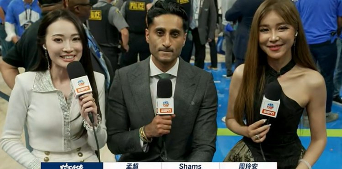 排面儿大!ESPN名记Shams接受孟超和周玲安的采访