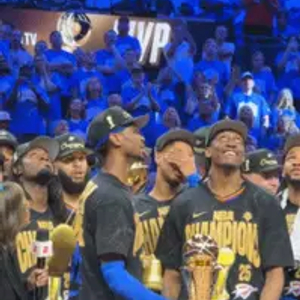 💖我的就是你的!SGA让杰伦威举FMVP奖杯并为他疯狂呐喊!