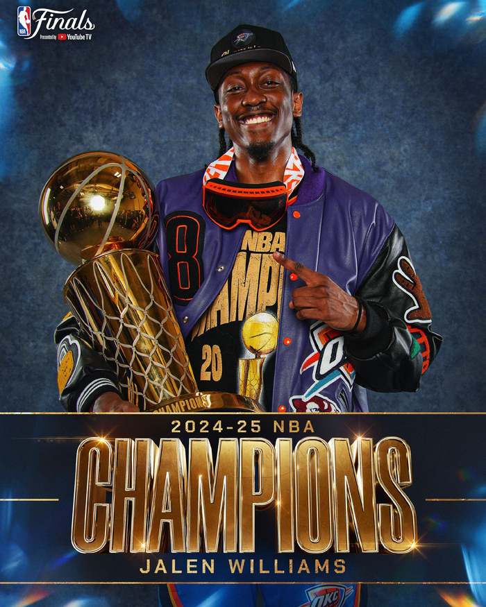 直播吧06月23日讯 今日NBA总决赛步行者VS雷霆G7,雷霆(4)103-91战胜步行者(3),获得2025NBA总冠军!