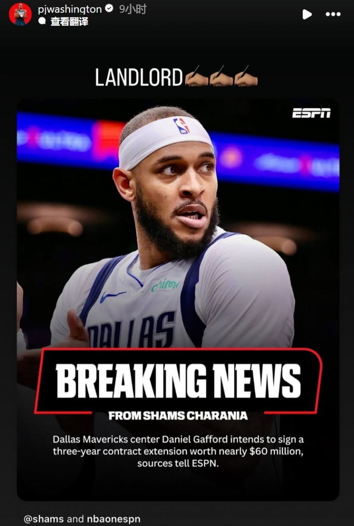 欧文和加福德皆在独行侠获新合同!PJ-华盛顿转发送祝福