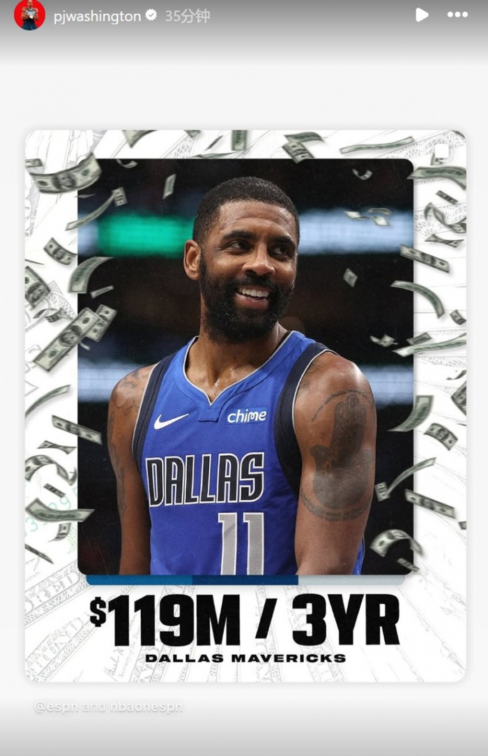 独行侠前锋PJ-华盛顿在INS转发了相关报道送祝福。