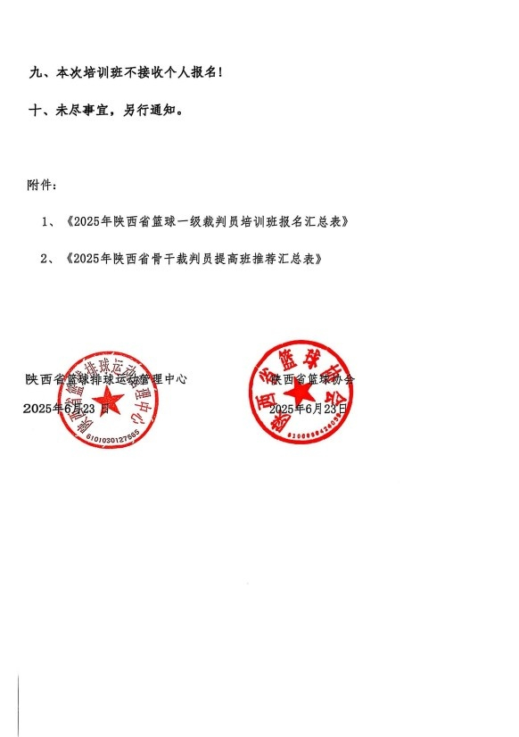 2025年陕西省骨干裁判员提高班及晋升一级篮球裁判员培训班通知