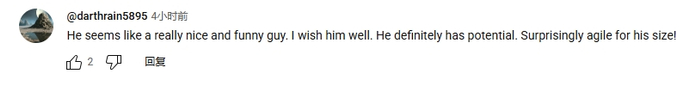 他看起来真的很不错,还风趣幽默。我祝他一切顺利,他绝对有潜力。从他的体型来看,他已经非常敏捷了