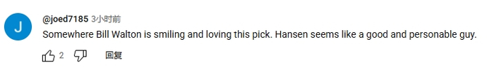 比尔-沃顿在某个地方微笑着,他会喜欢这个选择的。杨瀚森看起来是个善良的孩子,很有风度。