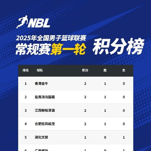 【积分榜】2025年NBL常规赛积分榜(截止至第一轮结束)。