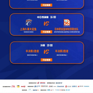 TIPS:半决赛门票包含半决赛两场,决赛门票包含季军战、中日表演赛、总决赛三场