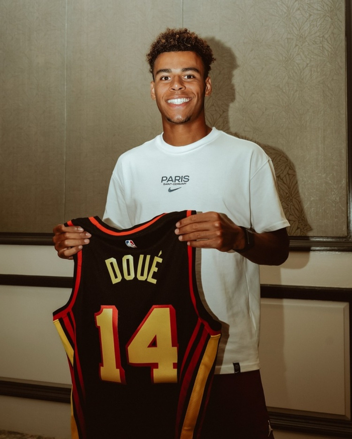 直播吧7月2日讯 老鹰官方更新社媒动态:“在大巴黎来亚特兰大比赛前,送给欧冠冠军球队定制的老鹰球衣作为礼物 。”老鹰也晒出了多位大巴黎球员展示球衣等周边的照片。