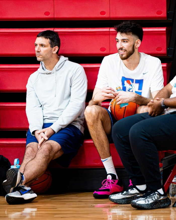 直播吧7月3日讯 切特-霍姆格伦近日在高中母校、位于明尼阿波利斯的明尼哈哈学院举办青少年训练营。而他的主教练戴格诺特也来到现场支持弟子的训练营。