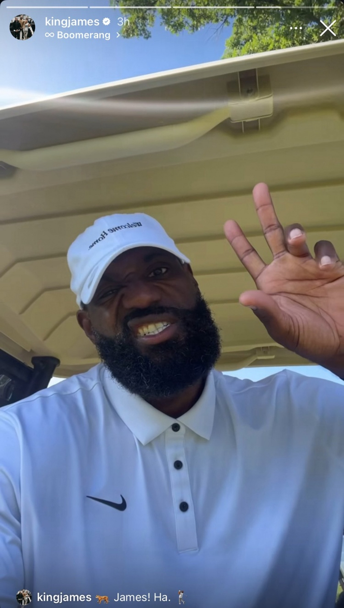 直播吧7月2日讯 今日,湖人前锋詹姆斯更新Instagram Story,晒出一组自己打高尔夫球的自拍动态。