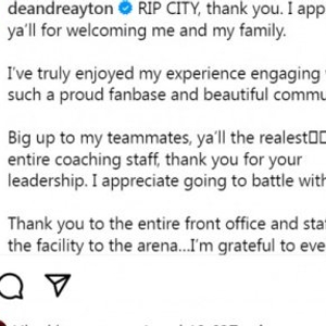 直播吧7月3日讯 之前艾顿与开拓者买断之后以2年合同加盟湖人。今日艾顿在社交媒体发文表达了对老东家的感谢,并提到了湖人队。