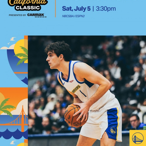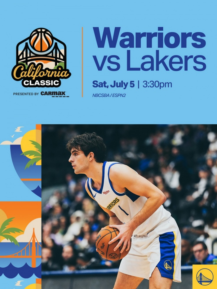 勇士官方晒出比赛海报,并言简意赅的配上了文案:“夏日篮球!加州经典赛开打了!”