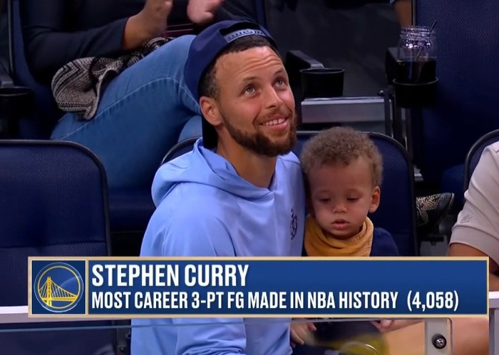 😛轻松愉快!库里现场观战勇士湖人加州经典赛