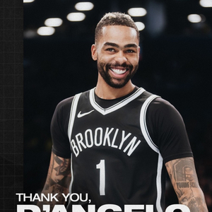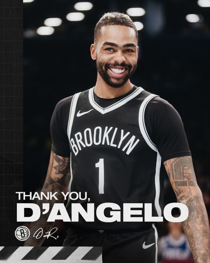 直播吧7月8日讯 篮网官方晒出了为德安吉洛-拉塞尔制作的特效图,并写道“谢谢你,拉塞尔。”