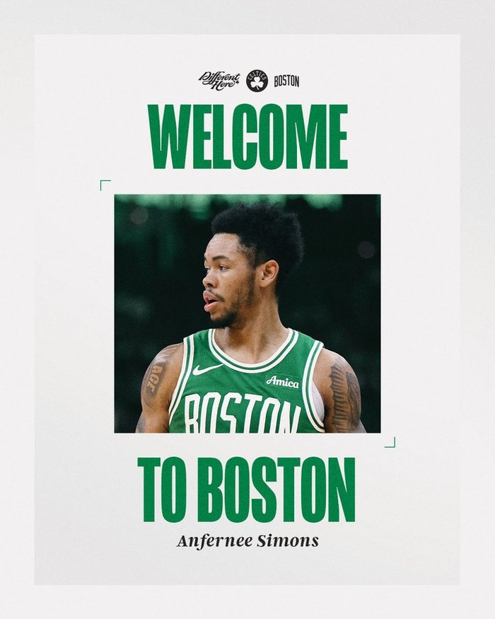 凯尔特人官方晒图:欢迎安芬尼-西蒙斯来到波士顿