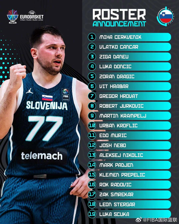 结束假期!东契奇领衔斯洛文尼亚2025年欧锦赛集训名单 8月底开打