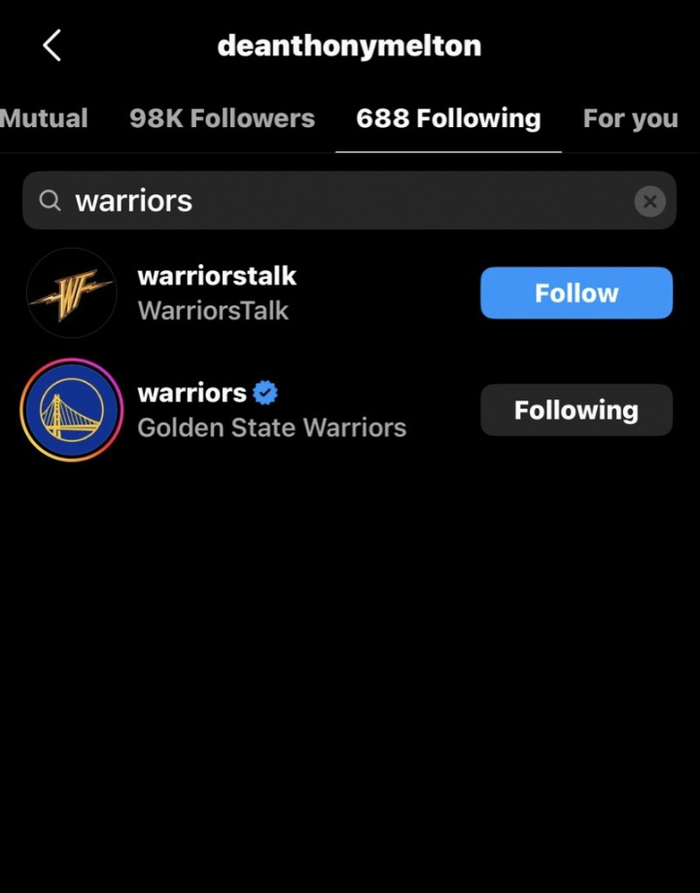 该勇媒表示,此前梅尔顿遭遇膝伤之后,曾经取关勇士,随后被交易至篮网。