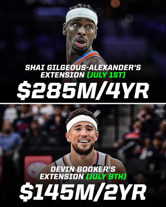 Shams:仅仅8天!布克就刷新了SGA提前续约的平均年薪纪录
