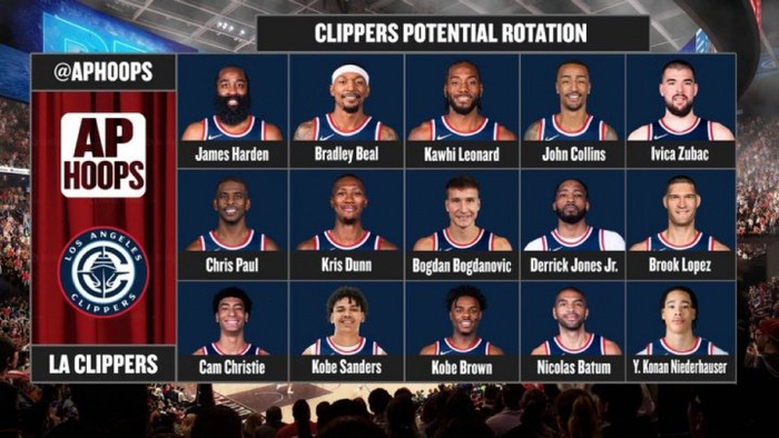 豪华战舰🚢美媒畅想比尔保罗加盟快船后的全阵容:哈登小卡领衔