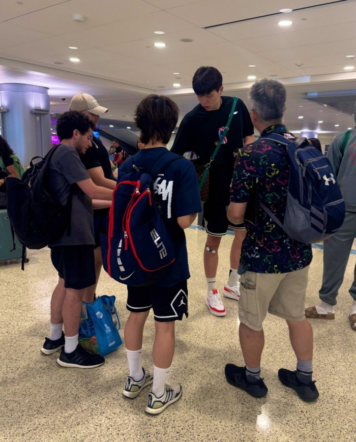 直播吧7月11日讯 开拓者队记Casey Holdahl晒出了一张杨瀚森在机场给几位球迷签名瞬间的照片,并写到:“他已经出名了。”