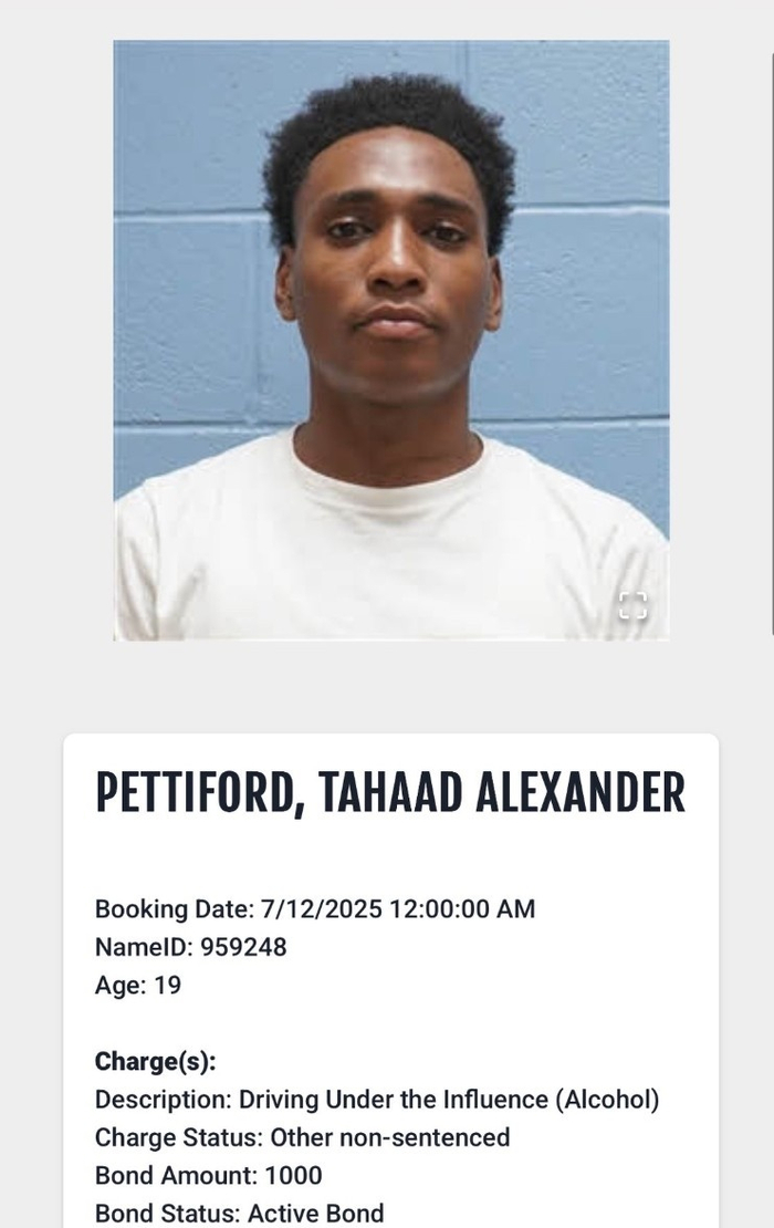 直播吧7月12日讯 据美记Barkley Truax报道,奥本大学19岁后卫塔哈德-佩蒂福德于当地时间周六凌晨在李县因涉嫌酒驾被捕。他的保释金为1000美元。