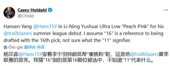 有趣的是,该记者表示,自己理解杨瀚森鞋子上的16代表自己在16顺位被选中,但不明白11是什么意思。