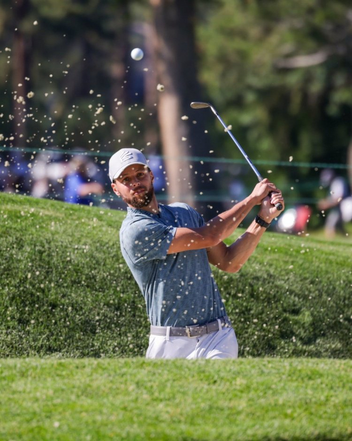 直播吧7月13日讯 今天,勇士球星库里晒出了自己参加塔霍湖高尔夫名人赛的照片。