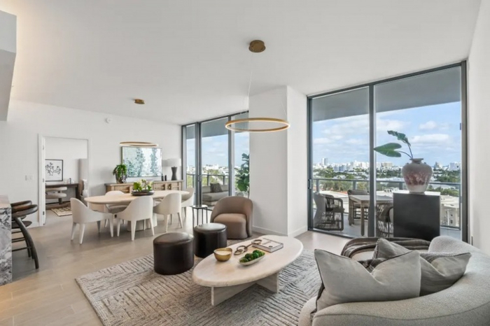 虽然最终成交价尚未公布,但该楼盘中类似的两卧单元价格在200万至300万美元之间。这个公寓面积达1451平方英尺(约135平方米),带有一个448平方英尺(约42平方米)的空中庭院,内部拥有10英尺(约3米)高的挑高天花板、一个专业厨师厨房和一个宽敞的主卧室套房。