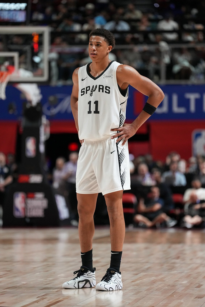 此役,马刺14号秀卡特-布莱恩特再次体现出守强攻弱的特点。他11投2中,三分3中0,罚球2中1,仅得5分。