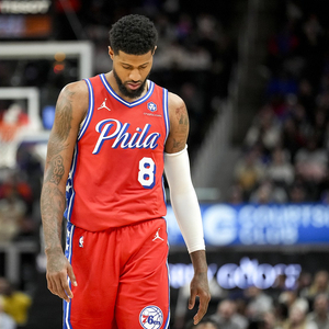 乔治本赛季出战41场比赛,场均32.5分钟,得到16.2分5.3篮板4.3助攻1.8抢断0.5盖帽,三项命中率为43/35.8/81.4%。