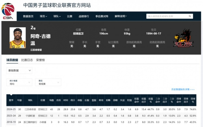 这种球员,最适合的……显然是CBA啊!而且显然是CBA下游球队啊!古德温18年在稠州,24年在宁波,25年在江苏,把比赛当投篮机玩。