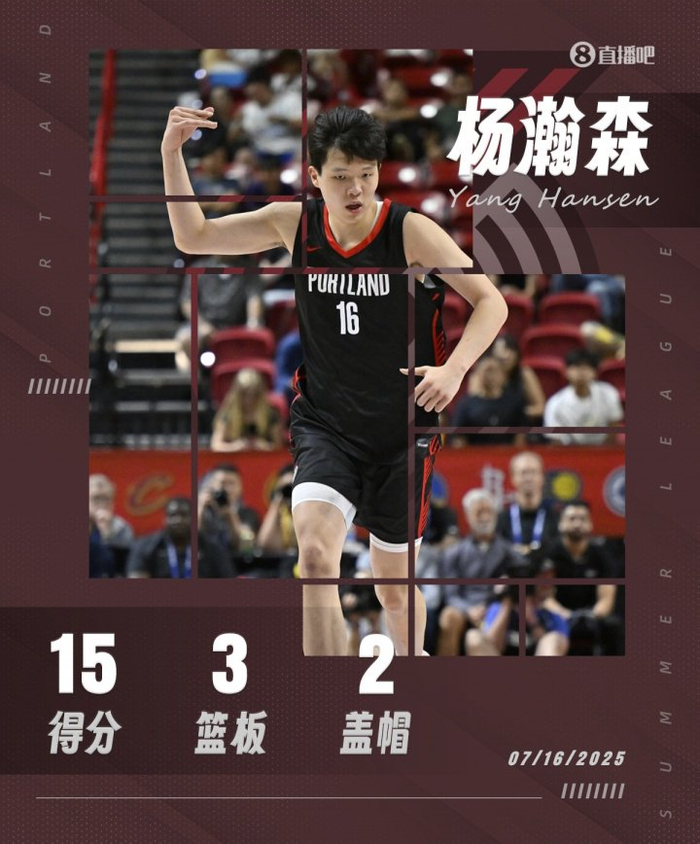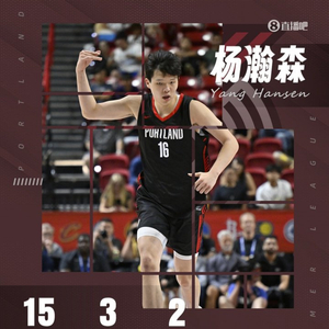 全场比赛,杨瀚森13中6,其中三分6中3,砍下15分3板2助1断2帽;得分创造了个人夏联的纪录(此前两场都是拿10分)。