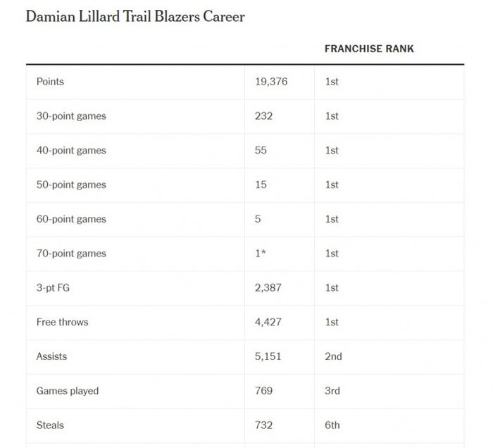 波特兰之王!利拉德是开拓者队史得分王 30+到70+场次均队史第一