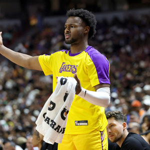 大学期间布朗尼场均能拿4.8分2.8板2.1助,他在去年次轮第25顺位被湖人选中。