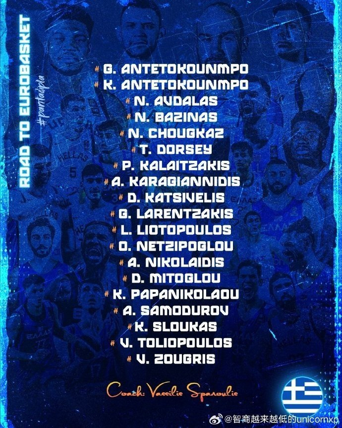 直播吧7月22日讯 希腊男篮公布欧锦赛19人集训大名单,详情如下: