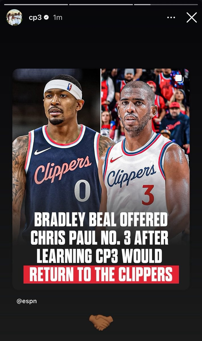 比尔主动将3号球衣让给保罗!保罗INS转发报道致谢:🤝
