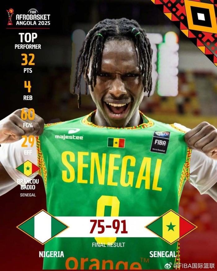 塞内加尔队进攻多点开花:队长巴迪奥砍下全场最高的32分,命中4记三分;小将布瓦西贡献21分,投中5记三分;迪奥普则交出14分10个篮板的“两双”成绩。篮板方面,塞内加尔队以53:35遥遥领先尼日利亚队,展现出明显的内线优势。