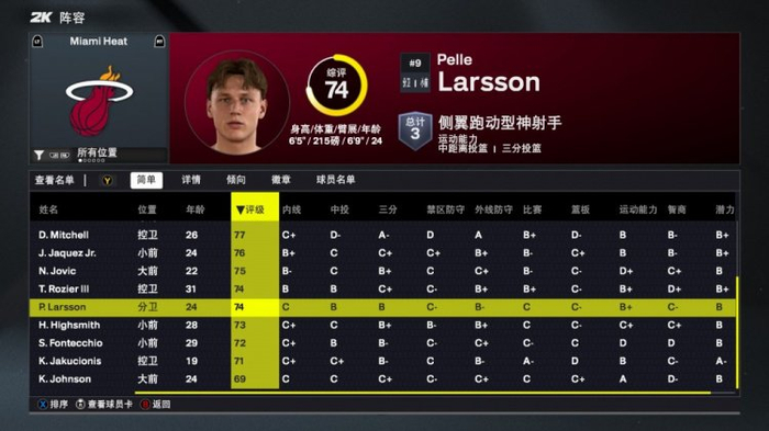 直播吧8月30日讯 NBA2K26各队球员能力值出炉,其中热火队球员详细能力值如下: