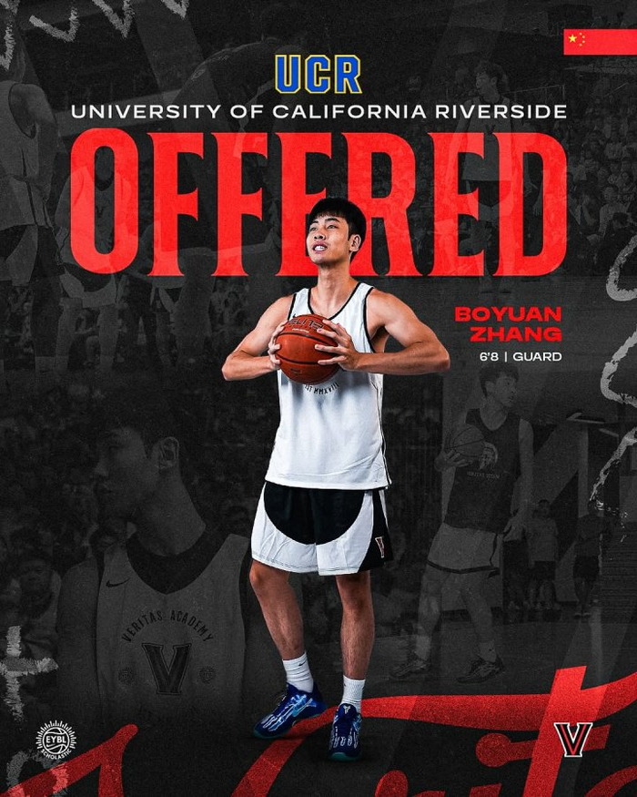 直播吧09月21日讯 美国高中Veritas Academy篮球队官方社媒更新动态,晒出队员们获得的NCAA学校Offer,其中中国球员、山西队新星张博源拿到了一级联盟加利福尼亚大学河滨分校的offer。