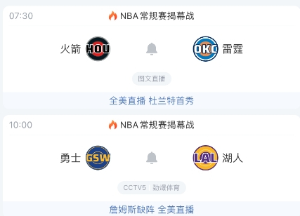 NBA回来了️明早揭幕:雷霆领冠军戒指 KD战旧主 湖勇大战来袭