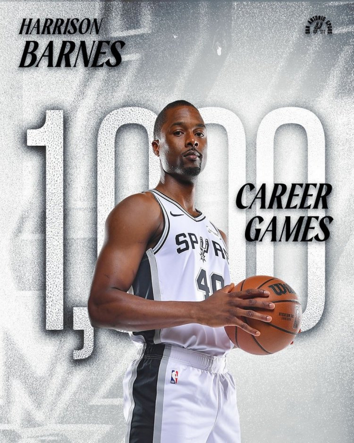 现役第16位!马刺官方祝贺哈里森·巴恩斯达到1000场里程碑!
