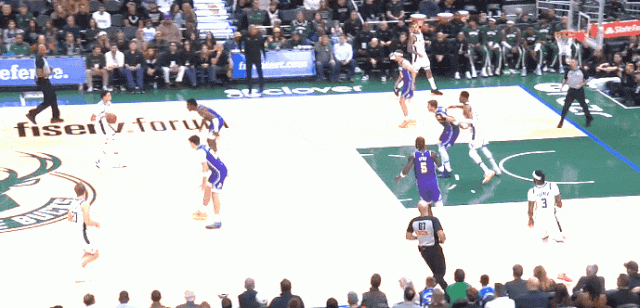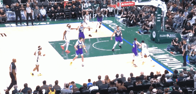 扬尼斯前场篮板直突篮下,卢卡底线站位,要到扬尼斯进攻犯规。