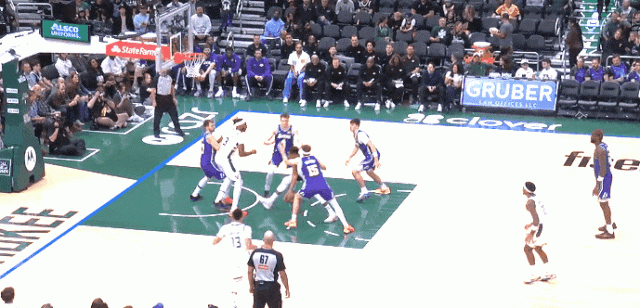 当然他换防护筐都不成,但有联盟最顶尖的切球+后场篮板+预判,也能用一身肉扛下戈贝尔。他经常像个手更快预判更好但不太盖帽的雄鹿版博古特。