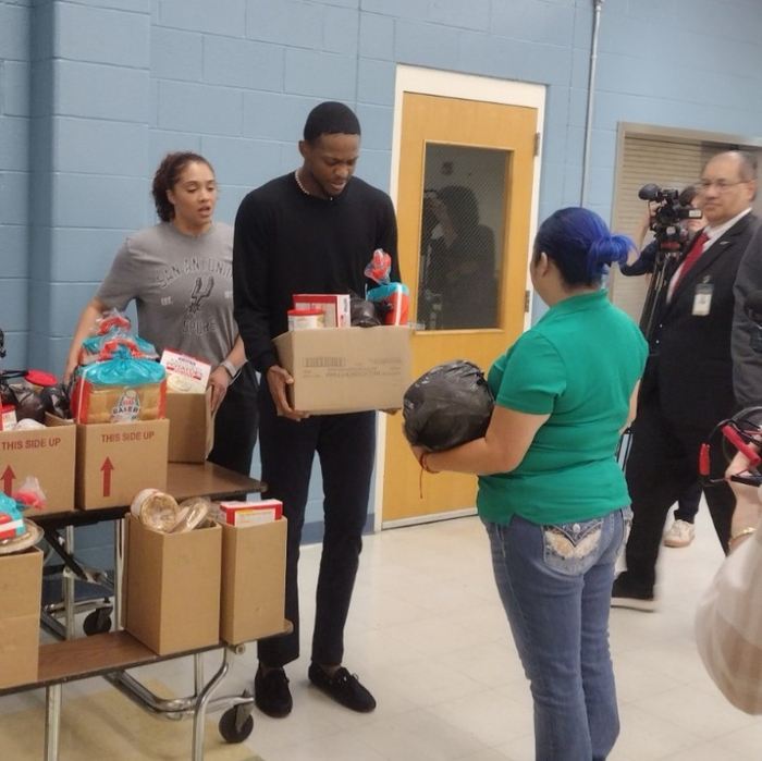 直播吧11月21日讯 据马刺记者Jeff Garcia报道,马刺后卫福克斯近日参加了社区活动,给南圣安东尼奥的居民提供食物篮子。