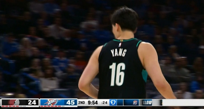 💥NBA生涯首个三分!杨瀚森迎着哈滕三分轰进 此前6中0!