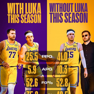 本赛季与东契奇同场时,里夫斯场均25.5分5.9助攻,投篮命中率52.6%,三分命中率35%;反之东契奇缺阵时,里夫斯场均41分10.3助攻,投篮命中率52.8%,三分命中率42.5%