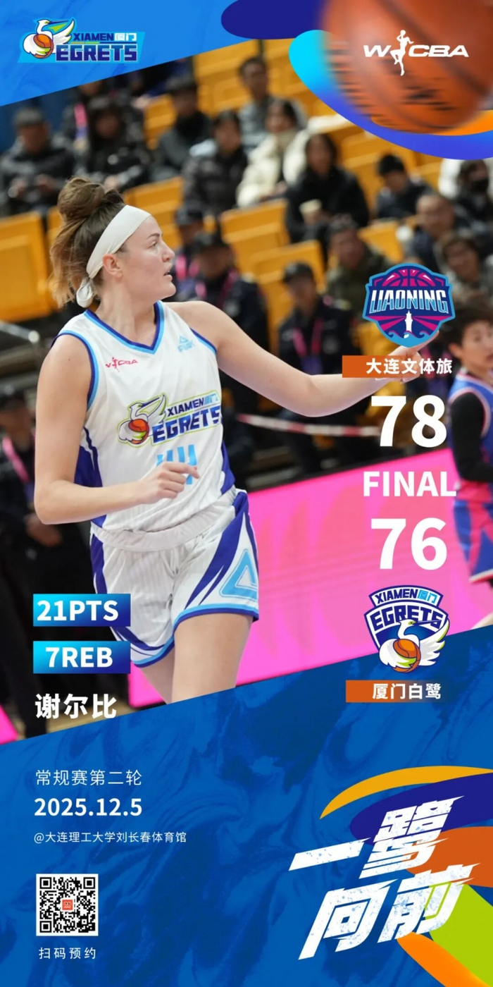 12月5日,WCBA新赛季第二场常规赛,厦门白鹭继续客场对阵大连文体旅。首场比赛,厦门白鹭在上半场形势大好的情况下,下半场进攻端断电最终被大连文体旅逆转,吃到开门黑。