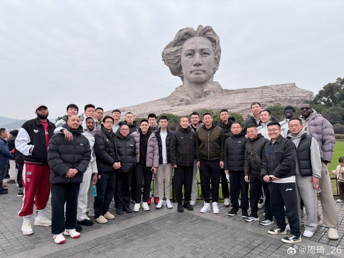 直播吧12月6日讯 北京男篮球员周琦更新社媒,晒出与队友在长沙知名景点橘子洲的合照。
